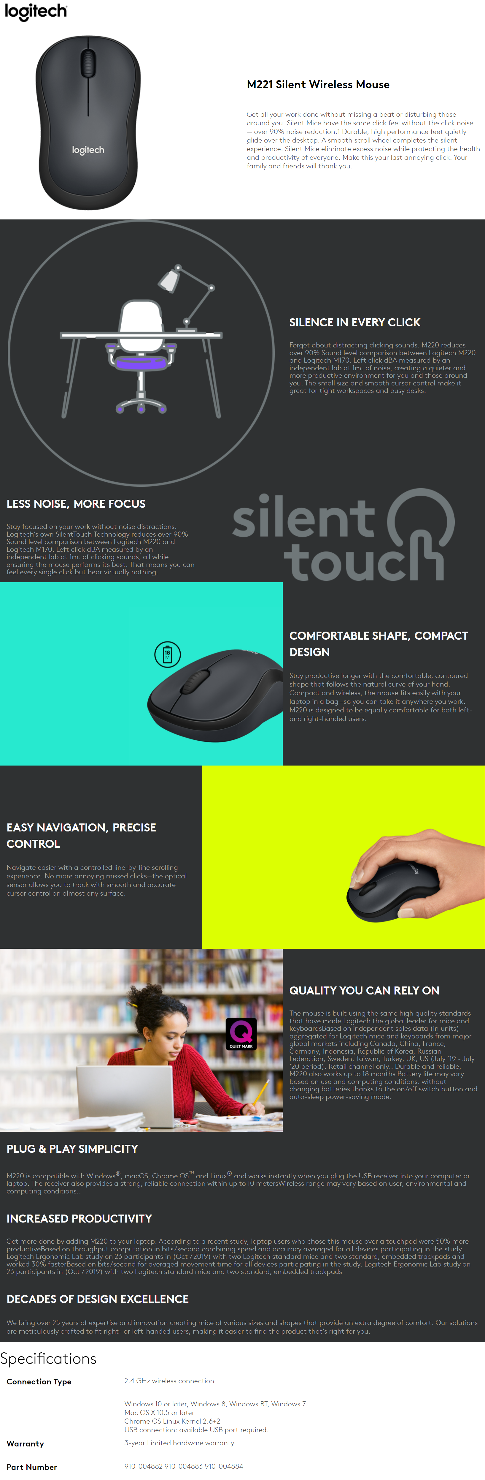 - Middle-click 8Sound level comparison between Logitech M221 and Logitech M170.